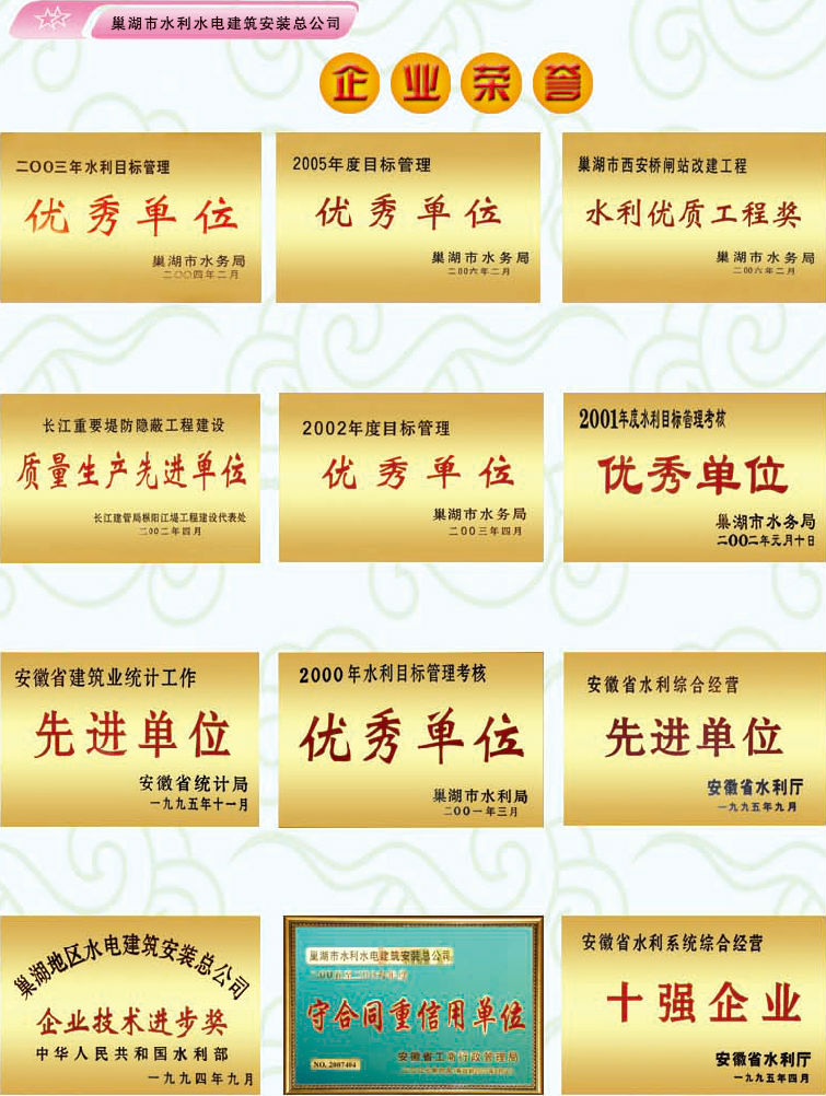 版權(quán)所有@安徽巢湖水利電力建設(shè)集團(tuán)有限公司 | 技術(shù)支持:希望科技 | 皖I(lǐng)CP備12007333號(hào)-1 | 營(yíng)業(yè)執(zhí)照 皖公網(wǎng)安備 34018102340640號(hào)