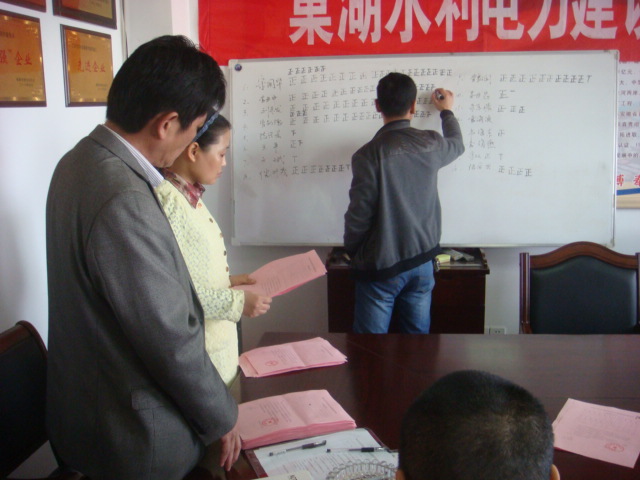 巢湖水利電力建設(shè)有限公司換屆選舉股東會于2015年4月12日9時在公司會議室召開,會議由宋國華同志主持。經(jīng)現(xiàn)場股東投票表決產(chǎn)生董事如下:宋國華、劉來發(fā)、李業(yè)中、曾勛德;由董事推選宋國華為董事長。經(jīng)現(xiàn)場股東投票表決產(chǎn)生監(jiān)事為李良潤。
