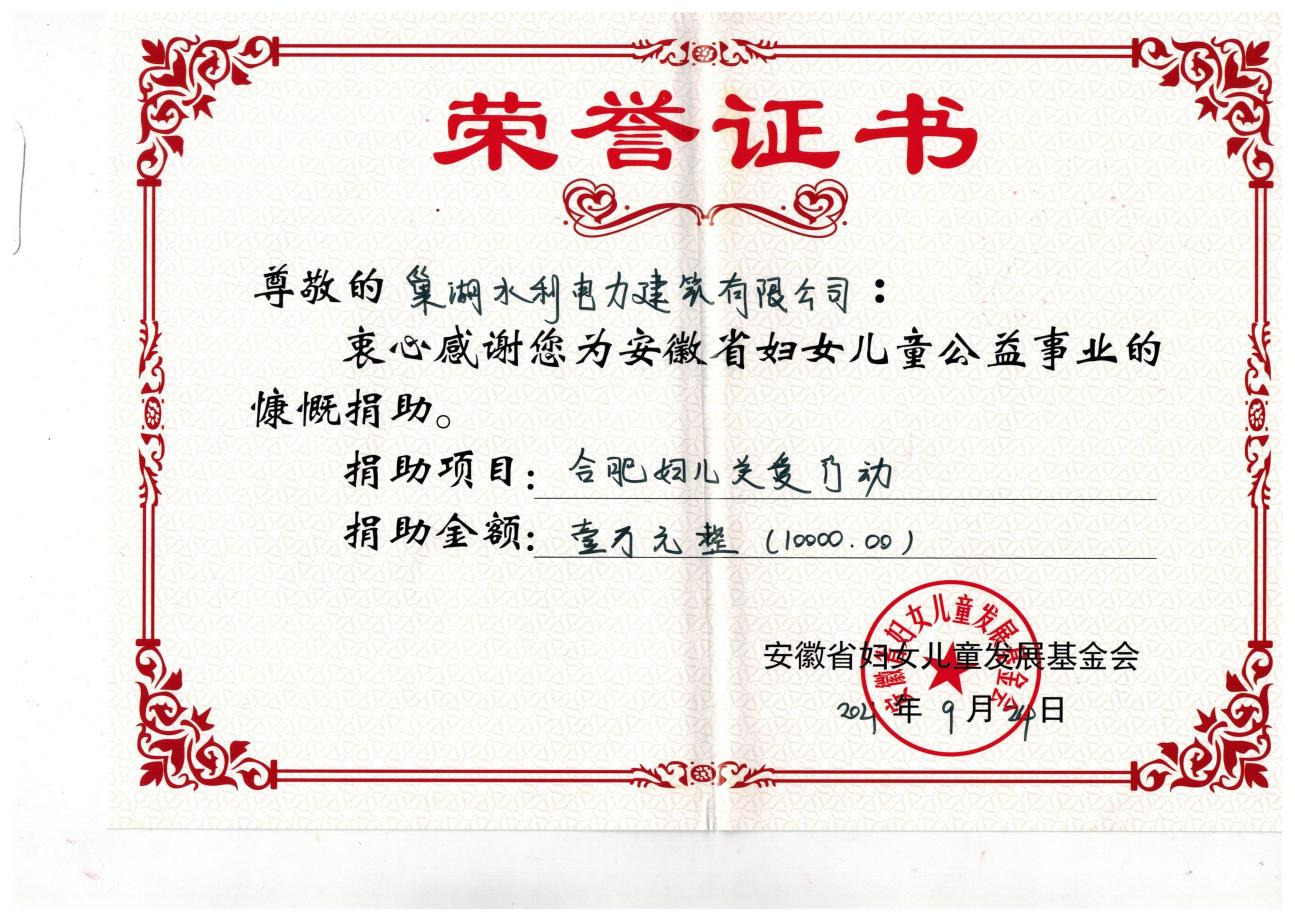 為大力弘揚(yáng)中華民族“樂善好施 扶弱濟(jì)困”傳統(tǒng)美德,凝聚社會(huì)力量,搭建公益平臺(tái),合肥市婦聯(lián)聯(lián)合安徽省婦女兒童發(fā)展基金會(huì)在2021年9月7日——9月9日期間,發(fā)起2021年“99公益日”合肥市婦兒關(guān)愛行動(dòng),廣泛宣傳發(fā)動(dòng)社會(huì)各界愛心單位和愛心人士,積極參與籌集愛心善款,開展公益捐贈(zèng)活動(dòng),以實(shí)際行動(dòng)幫助更多困難婦女兒童及其家庭。我公司向安徽省婦女兒童發(fā)展基金會(huì)捐款壹萬元整。